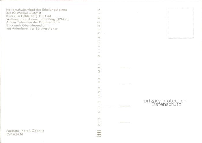 72375880 Oberwiesenthal Erzgebirge Hallenschwimmbad Fichtelberg Wetterwarte Talstation der Drahtseilbahn Sprungschanze postalisch nicht gelaufen Erhaltung siehe scans KatCode: 11110014171240