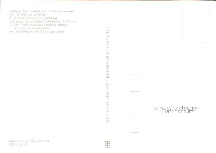 72542841 Oberwiesenthal Erzgebirge Hallenschwimmbad vom Erholungsheim Aktivist Wetterwarte auf dem Fichtelberg Drahtseilbahn postalisch nicht gelaufen Erhaltung siehe scans [AndreD76 kv012box] KatCode: 11110014171240