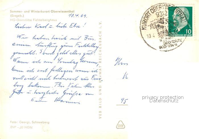73162204 alte Postkarte Oberwiesenthal Erzgebirge HO Gaststaette Fichtelberghaus Aussichtsturm postalisch gelaufen Erhaltung siehe scans [FriedD77] KatCode: 11110014171240