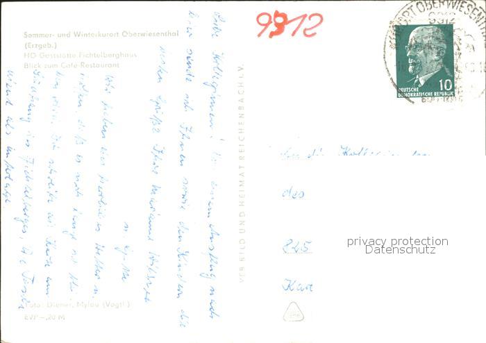 72273356 alte Postkarte Oberwiesenthal Erzgebirge HO Gaststaette Fichtelberghaus mit Cafe Restaurant postalisch gelaufen Erhaltung siehe scans KatCode: 11110014171240