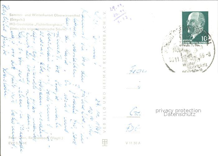 72328347 alte Postkarte Oberwiesenthal Erzgebirge HO Gaststaette Fichtelberghaus Saeule Wintersportplatz postalisch gelaufen Erhaltung siehe scans KatCode: 11110014171240