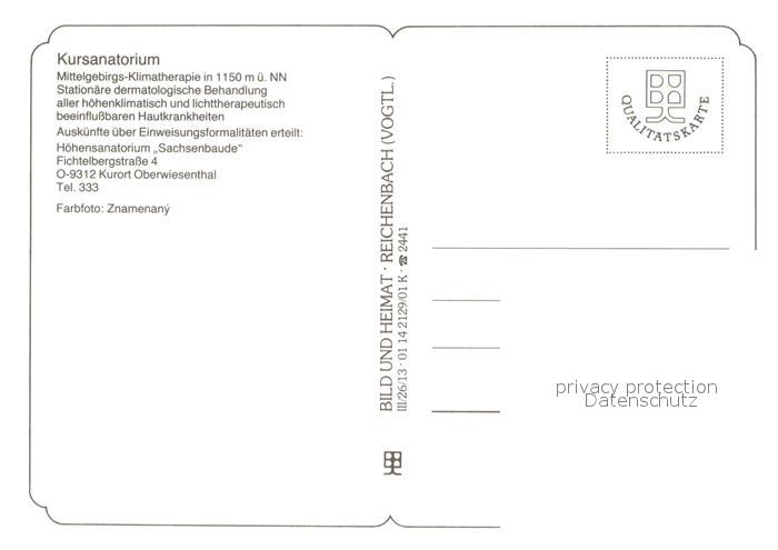 73741759 Oberwiesenthal Erzgebirge Hoehensanatorium Sachsenbaude postalisch nicht gelaufen Erhaltung siehe scans [WerneD78] KatCode: 11110014171240