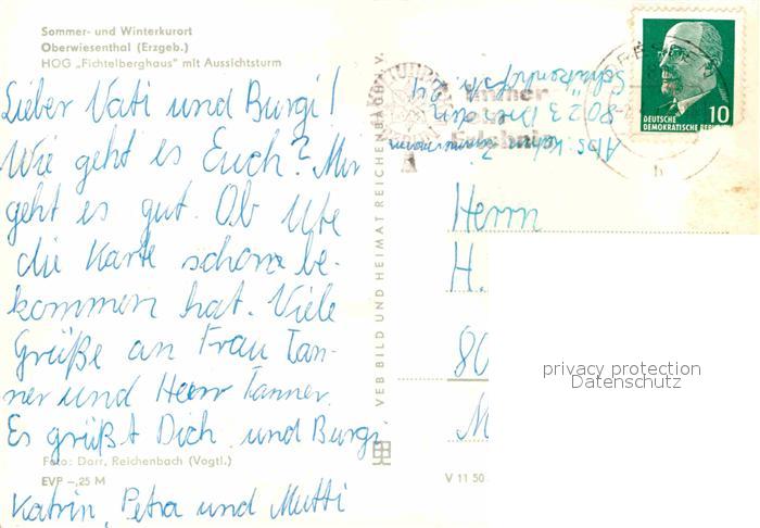 72632431 alte Postkarte Oberwiesenthal Erzgebirge HoG Fichtelberghaus Aussichtsturm Kurort Skifahrer Winterimpressionen postalisch gelaufen Erhaltung siehe scans [FriedD77] KatCode: 11110014171240