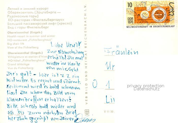 73032630 alte Postkarte Oberwiesenthal Erzgebirge HOG Fichtelberghaus Grosser Sessellift Panorama postalisch gelaufen Erhaltung siehe scans [KathaD81] KatCode: 11110014171240