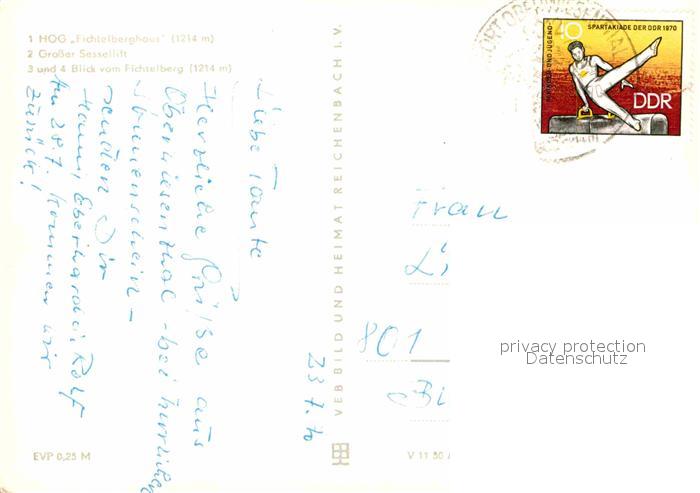 72643852 alte Postkarte Oberwiesenthal Erzgebirge HOG Fichtelberghaus Sessellift Fichtelberg postalisch gelaufen Erhaltung siehe scans [FriedD77] KatCode: 11110014171240
