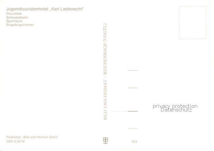 73756321 Oberwiesenthal Erzgebirge Jugendtouristenhotel Karl Liebknecht Discothek Schwebebahn Sportraum Erzgebirgszimmer postalisch nicht gelaufen Erhaltung siehe scans [LiesaD40] KatCode: 11110014171240