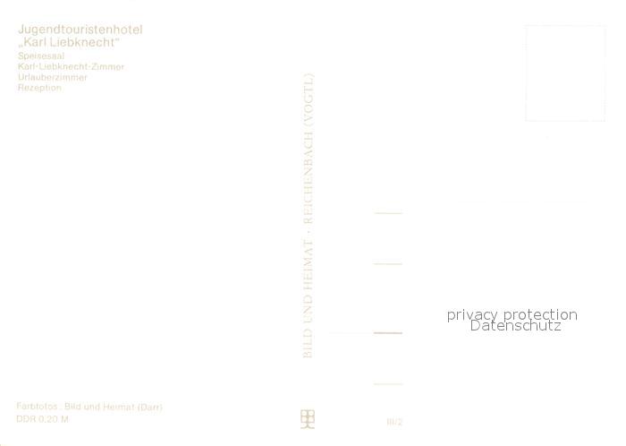 73616649 Oberwiesenthal Erzgebirge Jugendtouristenhotel Karl Liebknecht Speisesaal Karl Liebknecht Zimmer Urlauberzimmer Rezeption postalisch nicht gelaufen Erhaltung siehe scans [WerneD78] KatCode: 11110014171240