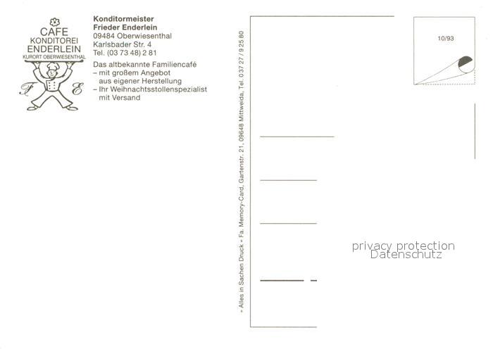 73652649 Oberwiesenthal Erzgebirge Konditorei Kaffee Enderlein postalisch nicht gelaufen Erhaltung siehe scans [FriedD77] KatCode: 11110014171240