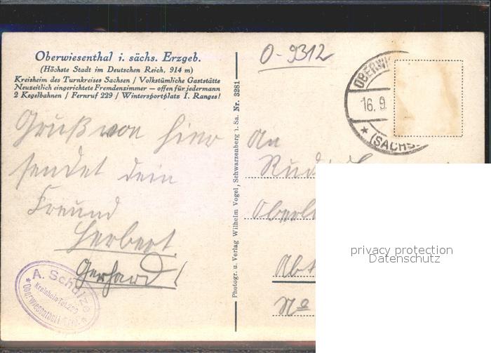 42250545 alte Postkarte Oberwiesenthal Erzgebirge Kreisheim des Turnkreises Sachsen postalisch gelaufen Erhaltung siehe scans KatCode: 11110014171240