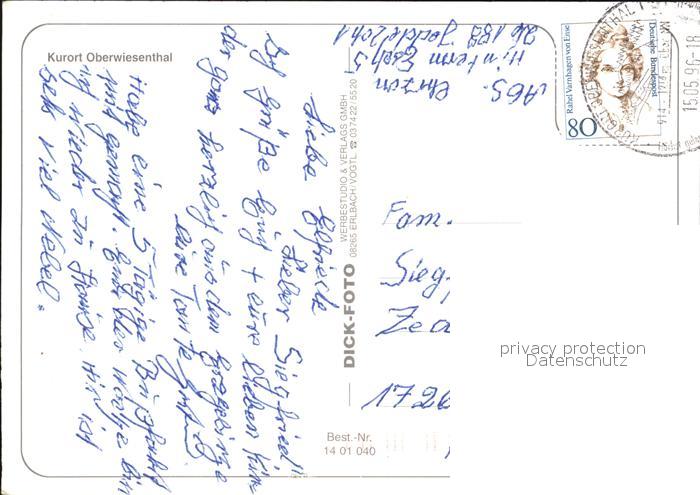 72519603 alte Postkarte Oberwiesenthal Erzgebirge Kurort Panorama postalisch gelaufen Erhaltung siehe scans KatCode: 11110014171240