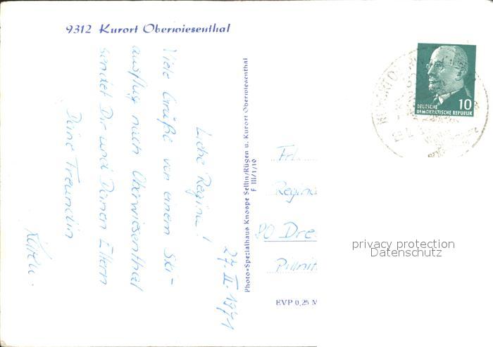 72365505 alte Postkarte Oberwiesenthal Erzgebirge Kurort Winter postalisch gelaufen Erhaltung siehe scans KatCode: 11110014171240
