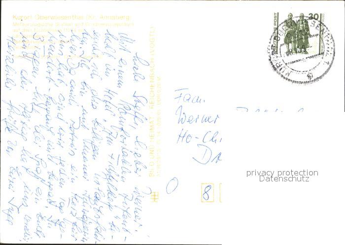 72354675 alte Postkarte Oberwiesenthal Erzgebirge Meteorol Station mit Gradmessungssaeule Laerchenzapfen Springbrunnen Panorama postalisch gelaufen Erhaltung siehe scans KatCode: 11110014171240