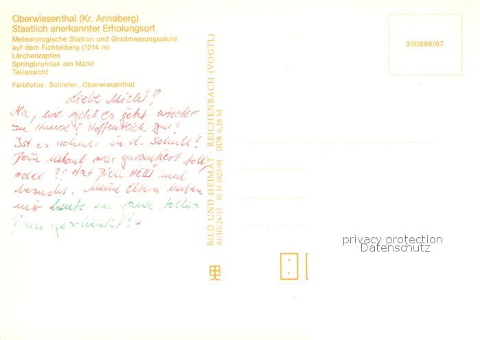 73014733 Oberwiesenthal Erzgebirge Meteorolog Station und Gradmessungssaeule Laerchenzapfen Springbrunnen Markt Teilansicht postalisch nicht gelaufen Erhaltung siehe scans [WerneD78] KatCode: 11110014171240