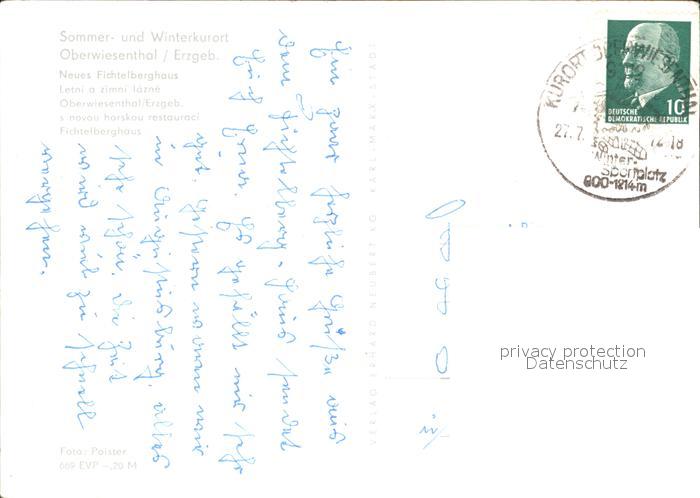 72382786 alte Postkarte Oberwiesenthal Erzgebirge Neues Fichtelberghaus postalisch gelaufen Erhaltung siehe scans KatCode: 11110014171240