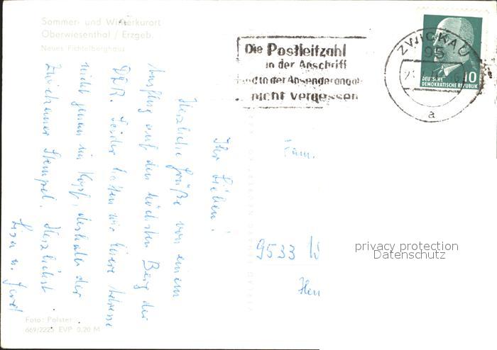 72247730 alte Postkarte Oberwiesenthal Erzgebirge Neues Fichtelberghaus postalisch gelaufen Erhaltung siehe scans KatCode: 11110014171240