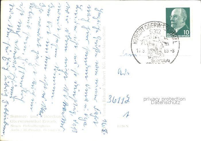 72153755 alte Postkarte Oberwiesenthal Erzgebirge Neues Fichtelberghaus postalisch gelaufen Erhaltung siehe scans KatCode: 11110014171240