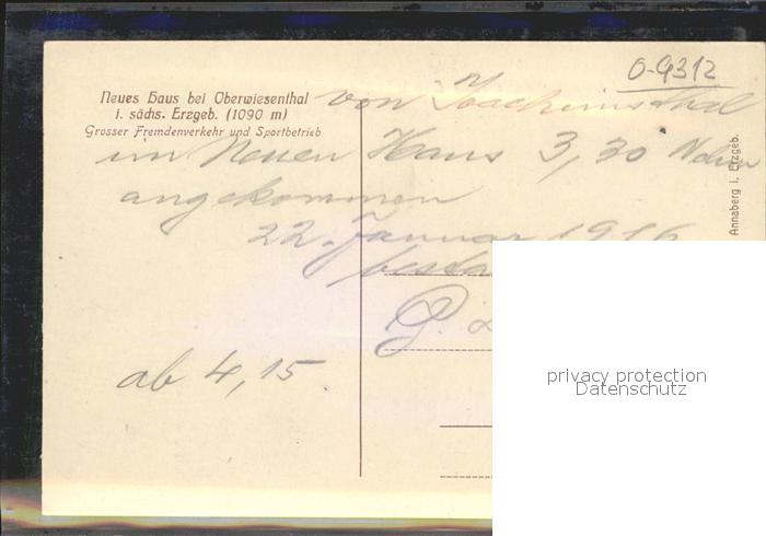 42277945 Oberwiesenthal Erzgebirge Neues Haus Winter postalisch nicht gelaufen Erhaltung siehe scans KatCode: 11110014171240