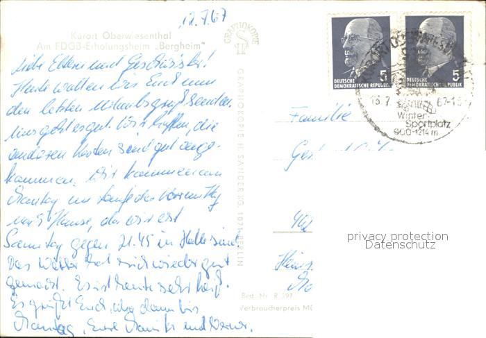 72508660 alte Postkarte Oberwiesenthal Erzgebirge Panorama Blick vom FDGB Erholungsheim Bergheim postalisch gelaufen Erhaltung siehe scans KatCode: 11110014171240