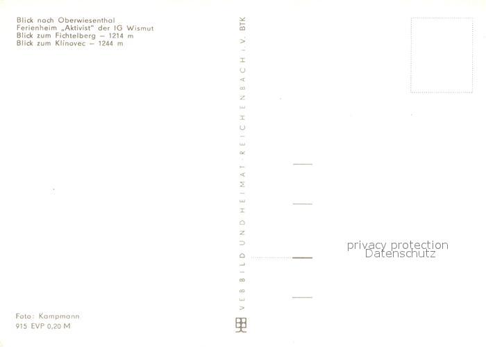 72996257 Oberwiesenthal Erzgebirge Panorama Ferienheim Aktivist Fichtelberg mit Klinivec postalisch nicht gelaufen Erhaltung siehe scans [WerneD78] KatCode: 11110014171240