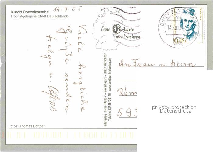 72694577 alte Postkarte Oberwiesenthal Erzgebirge Panorama Kurort Hoechstgelegene Stadt Deutschlands Felsen postalisch gelaufen Erhaltung siehe scans [FriedD77] KatCode: 11110014171240