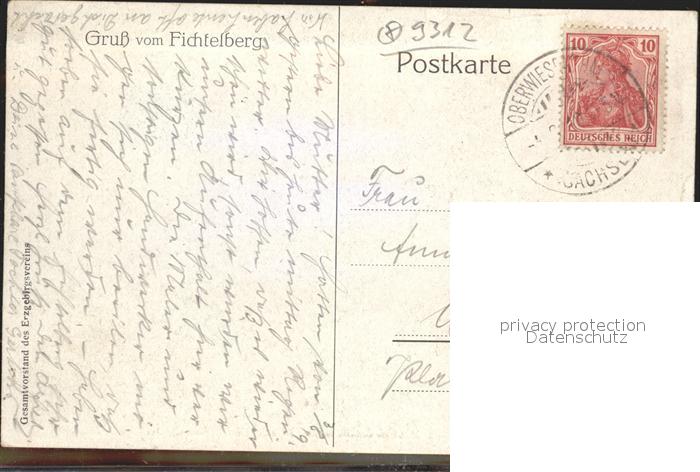 42269076 alte Postkarte Oberwiesenthal Erzgebirge Panorama mit Blick zum Fichtelberg Fichtelberghaus Aussichtsturm Kuenstlerkarte postalisch gelaufen Erhaltung siehe scans KatCode: 11110014171240