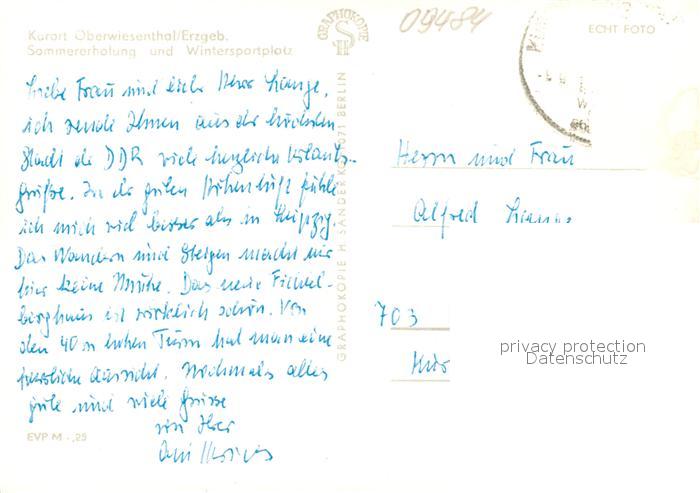 73567073 alte Postkarte Oberwiesenthal Erzgebirge Panorama Sommer- und Wintererholungsort postalisch gelaufen Erhaltung siehe scans [FriedD77] KatCode: 11110014171240