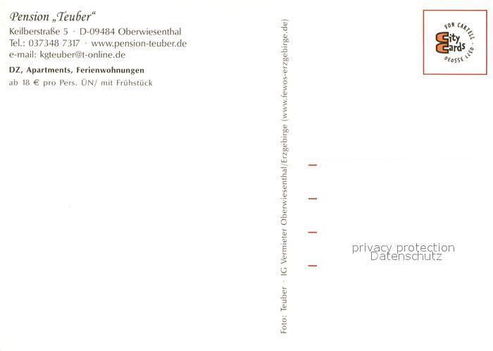 73547436 Oberwiesenthal Erzgebirge Pension Teuber Appartements Ferienwohnungen postalisch nicht gelaufen Erhaltung siehe scans [WerneD78] KatCode: 11110014171240
