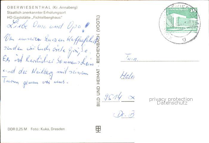 72548239 alte Postkarte Oberwiesenthal Erzgebirge Restaurant Fichtelberghaus Seilbahn postalisch gelaufen Erhaltung siehe scans [LiesaD40 kv019box] KatCode: 11110014171240