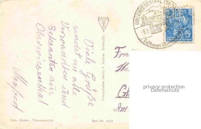 74099430 alte Postkarte Oberwiesenthal Erzgebirge Sachsen Marktplatz postalisch gelaufen Erhaltung siehe scans [WerneD78] KatCode: 11110014171240
