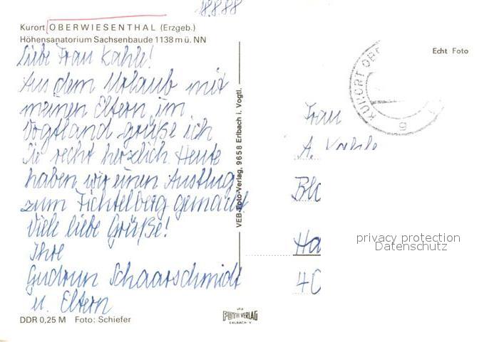 72920278 alte Postkarte Oberwiesenthal Erzgebirge Sanatorium Sachsenbaude postalisch gelaufen Erhaltung siehe scans [LiesaD40] KatCode: 11110014171240