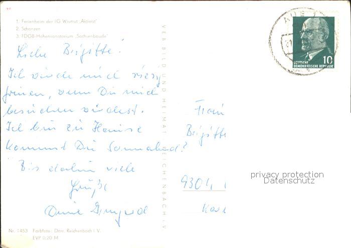 72383046 alte Postkarte Oberwiesenthal Erzgebirge Schanze Sanatorium Sachsenbaude Ferienheim Aktivist postalisch gelaufen Erhaltung siehe scans KatCode: 11110014171240