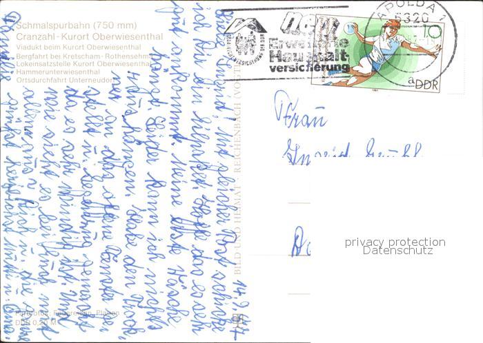 71939831 alte Postkarte Oberwiesenthal Erzgebirge Schmalspurbahn Cranzahl Viadukt Bergfahrt Kretscham Rothensehma postalisch gelaufen Erhaltung siehe scans KatCode: 11110014171240