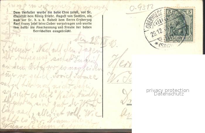 42269155 alte Postkarte Oberwiesenthal Erzgebirge Schneeschuhfahrer Marsch Lied Noten Skifahrer postalisch gelaufen Erhaltung siehe scans KatCode: 11110014171240