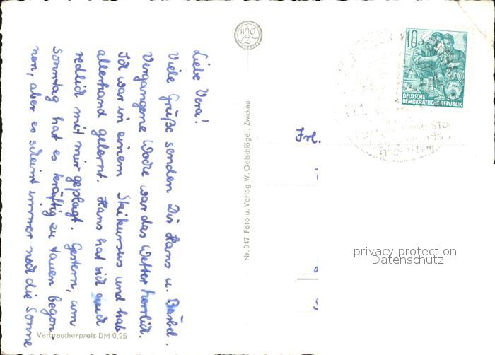 72385571 alte Postkarte Oberwiesenthal Erzgebirge Schwebebahn Fichtelberg Berghotel Sprungschanzen postalisch gelaufen Erhaltung siehe scans KatCode: 11110014171240