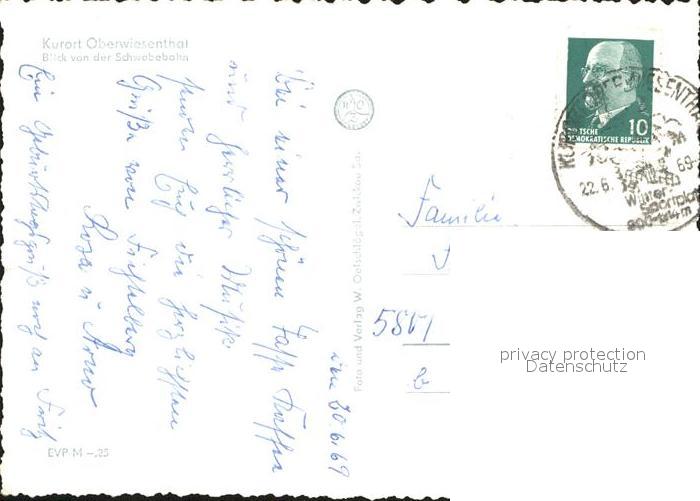 71929224 alte Postkarte Oberwiesenthal Erzgebirge Seilbahn postalisch gelaufen KatCode: 11110014171240