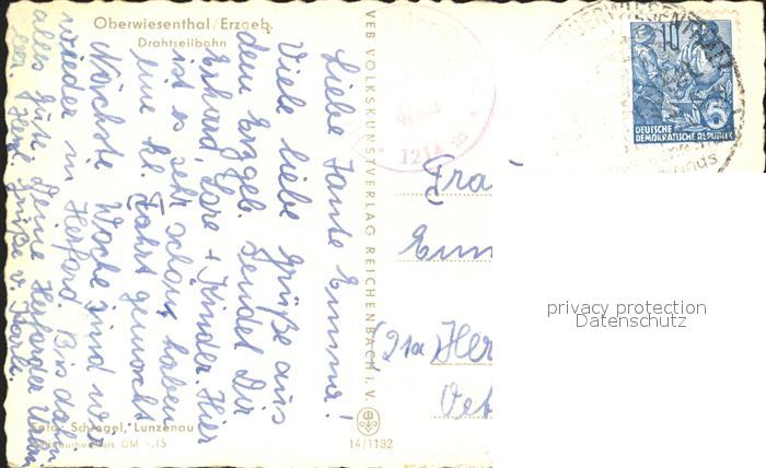 71926548 alte Postkarte Oberwiesenthal Erzgebirge Seilbahn postalisch gelaufen Erhaltung siehe scans KatCode: 11110014171240