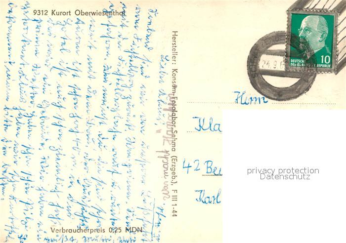 73276862 alte Postkarte Oberwiesenthal Erzgebirge Seilbahn postalisch gelaufen Erhaltung siehe scans [LiesaD40] KatCode: 11110014171240