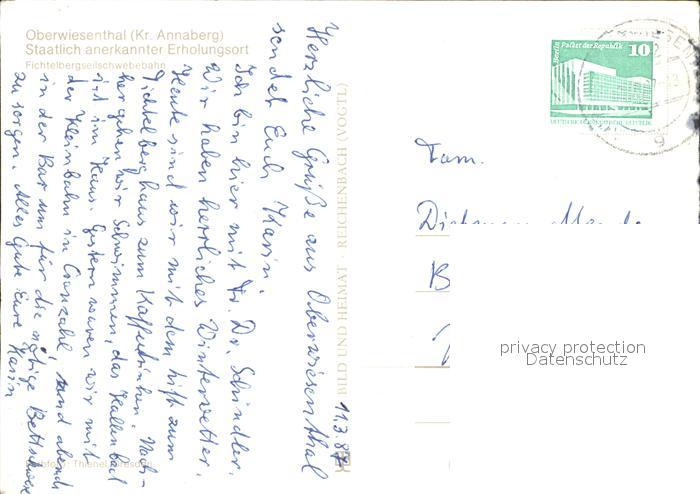 72383277 alte Postkarte Oberwiesenthal Erzgebirge Seilbahn am Fichtelberg postalisch gelaufen Erhaltung siehe scans KatCode: 11110014171240