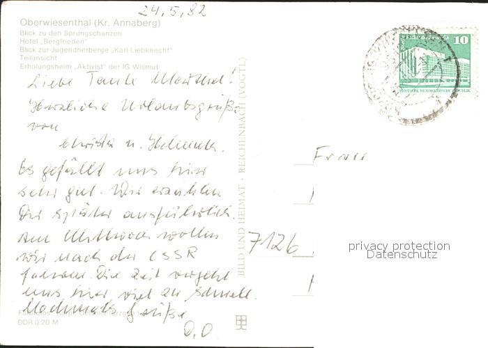 72375058 alte Postkarte Oberwiesenthal Erzgebirge Seilbahn Hotel Bergfrieden Erholungsheim Aktivist postalisch gelaufen Erhaltung siehe scans KatCode: 11110014171240