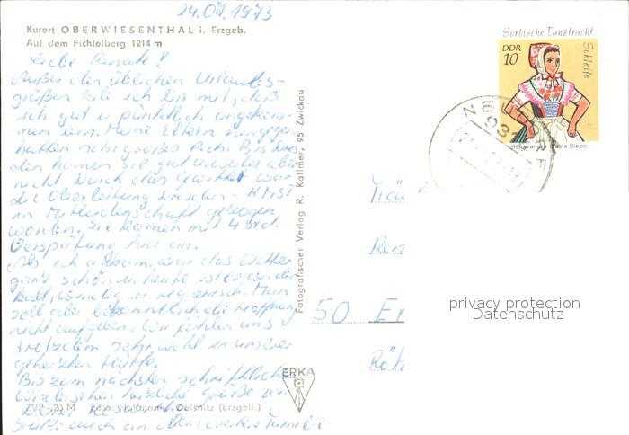 71930029 alte Postkarte Oberwiesenthal Erzgebirge Seilbahn zum Fichtelberg postalisch gelaufen Erhaltung siehe scans KatCode: 11110014171240