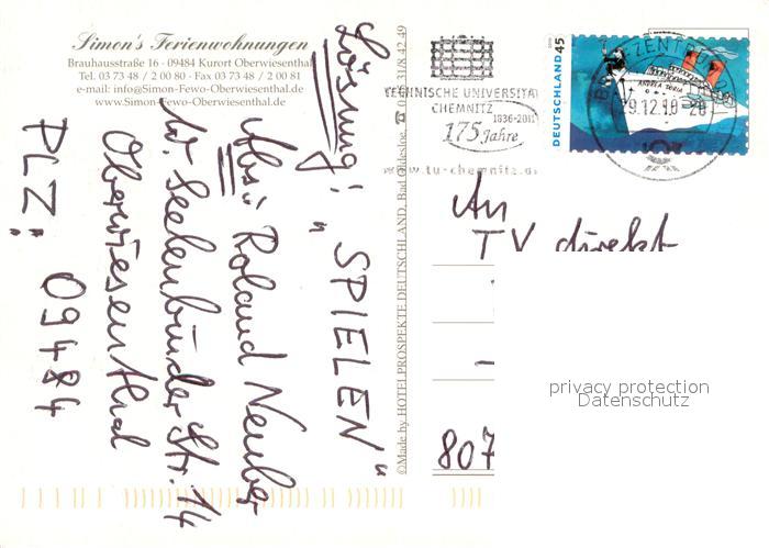 73658326 alte Postkarte Oberwiesenthal Erzgebirge Simon’s Ferienwohnungen postalisch gelaufen Erhaltung siehe scans [FriedD77] KatCode: 11110014171240