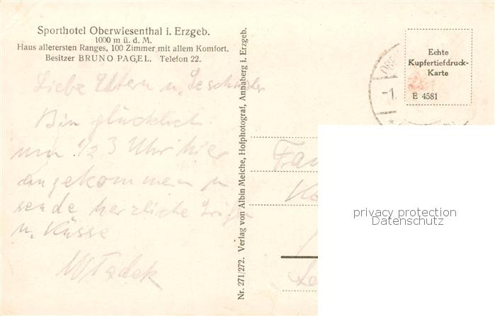 73801649 alte Postkarte Oberwiesenthal Erzgebirge Sporthotel Oberwiesenthal postalisch gelaufen Erhaltung siehe scans [WerneD78] KatCode: 11110014171240
