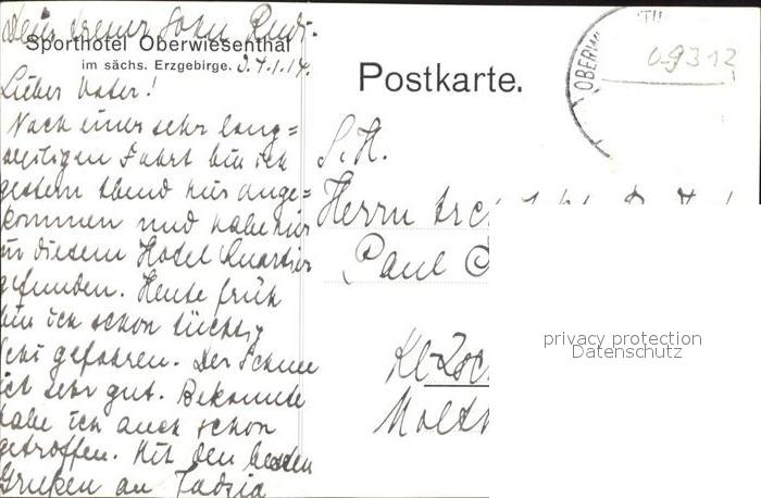 42288564 alte Postkarte Oberwiesenthal Erzgebirge Sporthotel Pferdeschlitten postalisch gelaufen Erhaltung siehe scans KatCode: 11110014171240