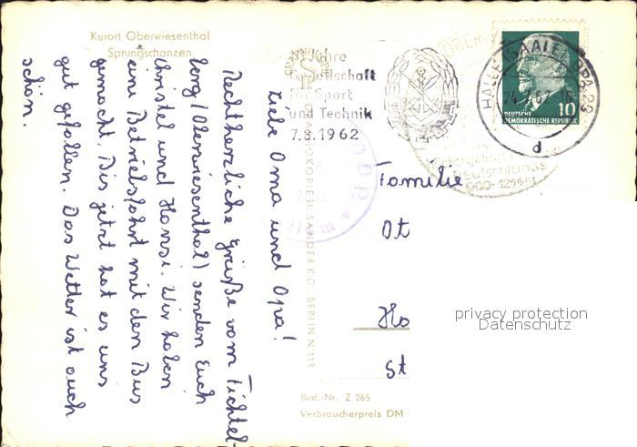 72506320 alte Postkarte Oberwiesenthal Erzgebirge Sprungschanze postalisch gelaufen Erhaltung siehe scans KatCode: 11110014171240