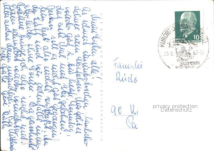 72373590 alte Postkarte Oberwiesenthal Erzgebirge Sprungschanze Winterlandschaft postalisch gelaufen Erhaltung siehe scans KatCode: 11110014171240