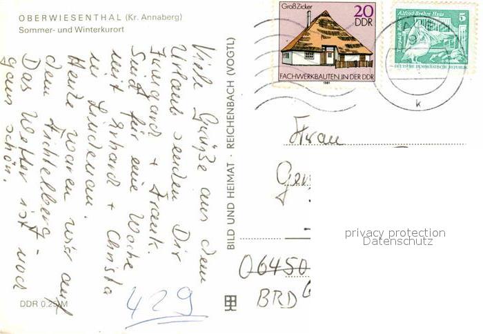72770018 alte Postkarte Oberwiesenthal Erzgebirge Stadt Wetterwarte auf dem Fichtelberg Blick zum Klinovec postalisch gelaufen Erhaltung siehe scans [AndreD76] KatCode: 11110014171240