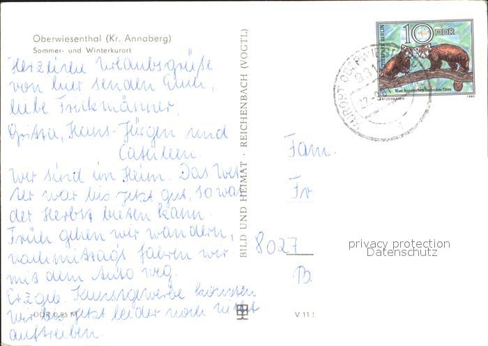 72358492 alte Postkarte Oberwiesenthal Erzgebirge Stadtblick Kinovec Sessellift Wetterwarte Fichtelberg Aussichtsturm postalisch gelaufen Erhaltung siehe scans KatCode: 11110014171240