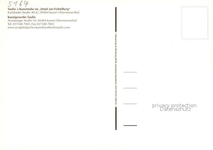 73210233 Oberwiesenthal Erzgebirge Taulins Hotel Kunststube Hotel Fichtelberg Kunsthandwerk Schwibbogen postalisch nicht gelaufen Erhaltung siehe scans [FriedD77] KatCode: 11110014171240