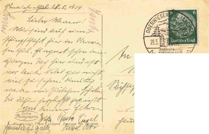 73961468 alte Postkarte Oberwiesenthal Erzgebirge und Boehmisch-Wiesenthal mit dem Fichtelberg postalisch gelaufen Erhaltung siehe scans [FriedD77] KatCode: 11110014171240