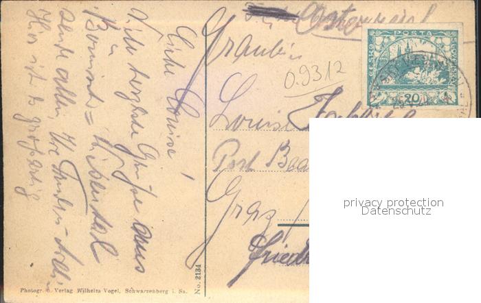 42275971 alte Postkarte Oberwiesenthal Erzgebirge Unter- und Boehmisch- Wiesenthal postalisch gelaufen Erhaltung siehe scans KatCode: 11110014171240